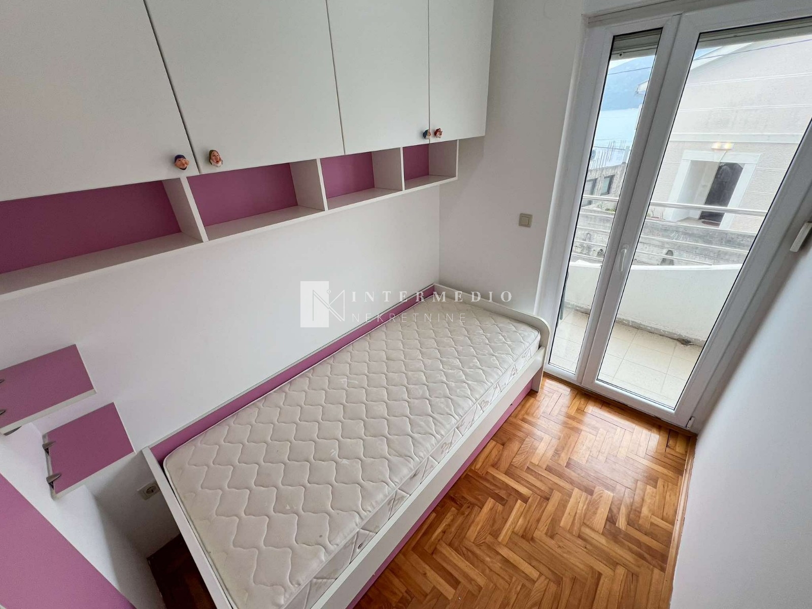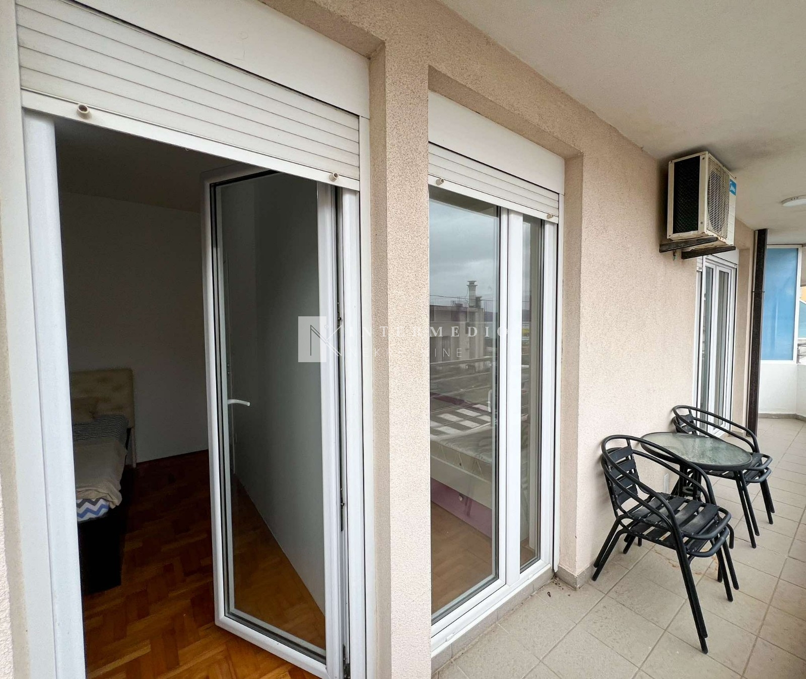Struktura stana: Ulazni hodnik sa ugradnim ormarom, kupatilo, kuhinja i trpezarija sa dnevnim boravkom i izlazom na terasu, hodnik sa ugradnim ormarom i dvije spavaće sobe sa izlazom na terasu.