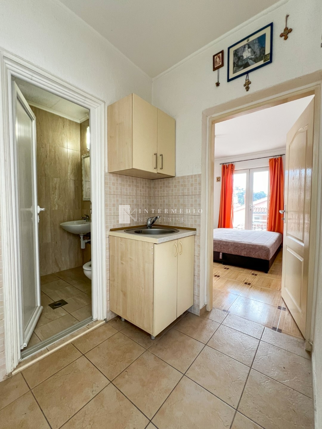 Studio apartman sa zasebnim ulazom i izlaskom na veliku zajedničku terasu koju je moguće pregraditi.