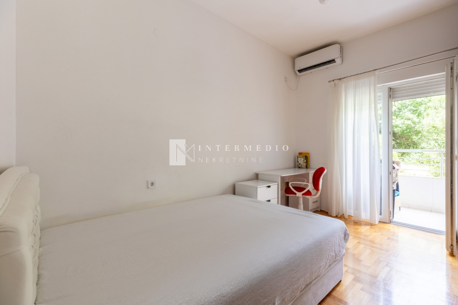 Struktura stana: Ulazni hodnik, dvije spavaće sobe, kupatilo, WC, dnevni boravak sa kuhinjom i trpezarijom, dvije terase od kojih jedna ima predivan pogled na more, a druga na šumu.